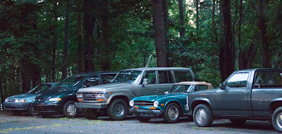 | Period cars parked on set at Red Top Mountain State Park. Photo: Skip Hammerman |