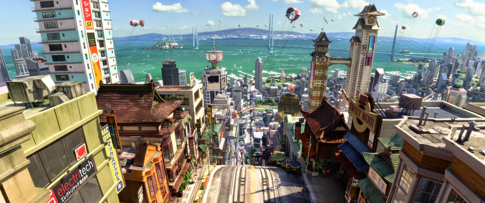 | The beautifully rendered fictional world of San Fransokyo. |