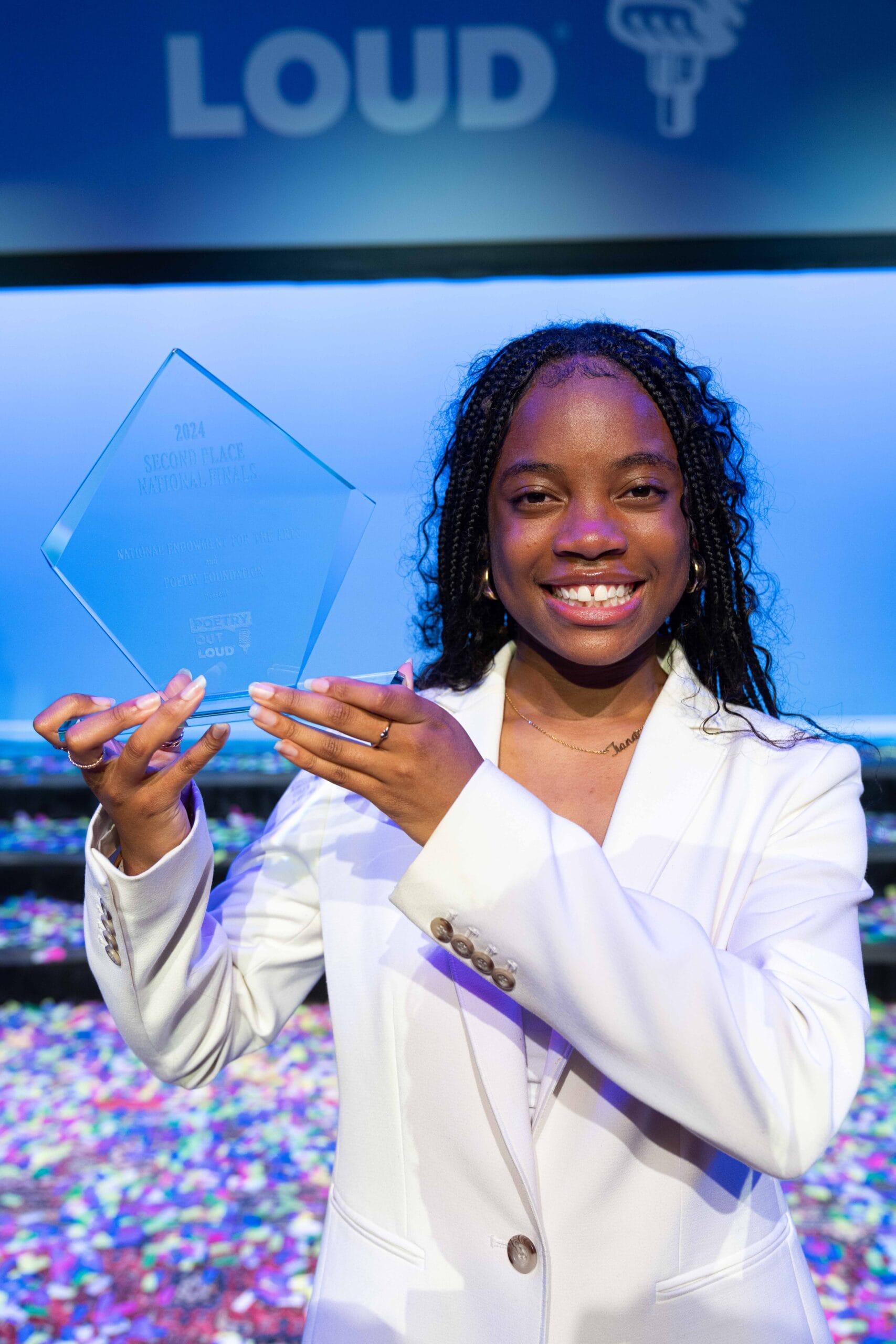 Tiana Jones, a sophomore at Whitefield Academy in Cobb County, finished second in the nation and won a $10,000 prize at the national Poetry Out Loud competition in Washington, D.C., yesterday, May 2.