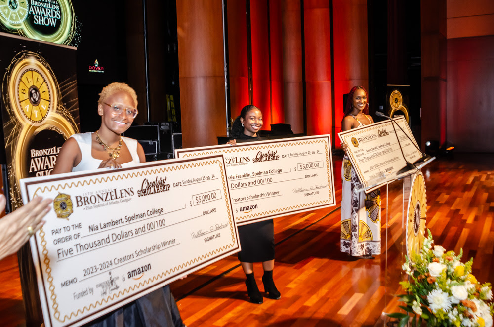 Another highlight of the BronzeLens Awards is the presentation of the BronzeLens Creators Scholars. Spelman College students Amira Barrett, Fine Arts in Documentary Film Major, McKenzie Franklin, Theatre and Performance Major, Documentary Filmmaking Minor, and Nia Lambert, Fine Arts in Documentary Film with a minor in Photography are the 2024 class of BronzeLens Creators Scholars. Each was presented at the BronzeLens Awards and received $5000 scholarships designated for tuition. All scholarships are granted at the sole discretion of the BronzeLens Creators Scholarship Committee.