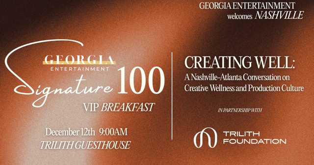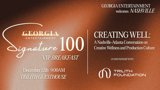 The Georgia Entertainment breakfast “Creating Well: A Nashville-Atlanta Conversation on Creative Wellness and Production Culture,” presented by Trilith Foundation is an invite only affair for partners and leading industry influencers intimately involved in the business of Georgia’s creative economy. If you have been invited or wish to request an invite, please submit the form below.