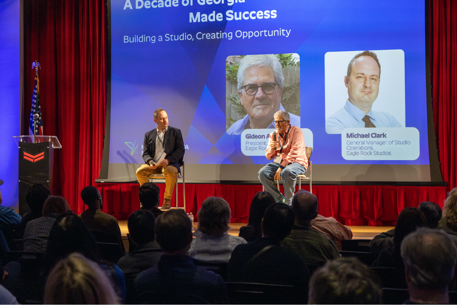 The day was capped off with a greeting from Lee Thomas, Deputy Commissioner of the Georgia Film Office, and two mainstage panels: “A Decade of Georgia-Made Success: Building A Studio, Creating Opportunity” with Eagle Rock Studios’ President, Giden Amir, and General Manager, Mike Clark, followed by “From Passion to Profit: The Business of Film” with City National Bank Senior Vice President Randie Brooks and Element CPA & Storyboard Financial Services’ Kristy Clabaugh, John Thomas and Dan Kelly.