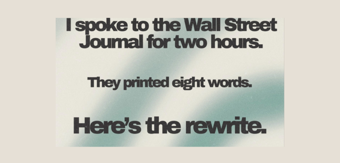 I spoke to The Wall Street Journal for two hours. They printed eight words. Here’s the rewrite…